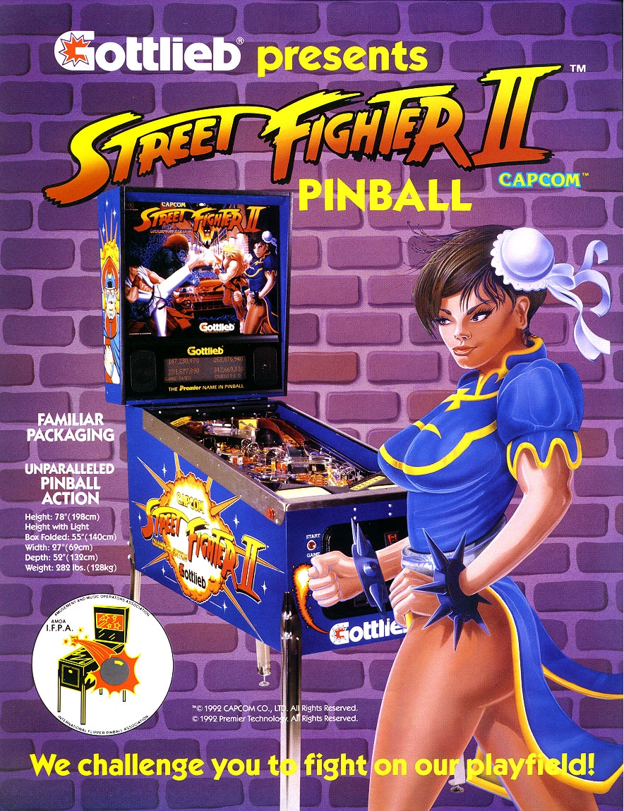 Esta máquina de pinball aparecía ilustrada con imágenes de los personajes de la saga Street Fighter II, incluyendo a M. Bison, E. Honda, Chun-Li, Blanka, Dhalsim, Guile y Zangief.