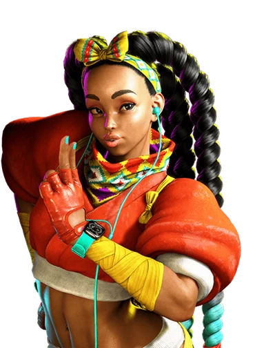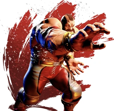 A British boxer/wrestler who is covered in leather clothes, wears an open leather jacket with no shirt underneath, and a blue M. Bison style military hat, as well as blue fingerless boxing gloves. He has short blonde hair cut in an undercut style, and has blue eyes.