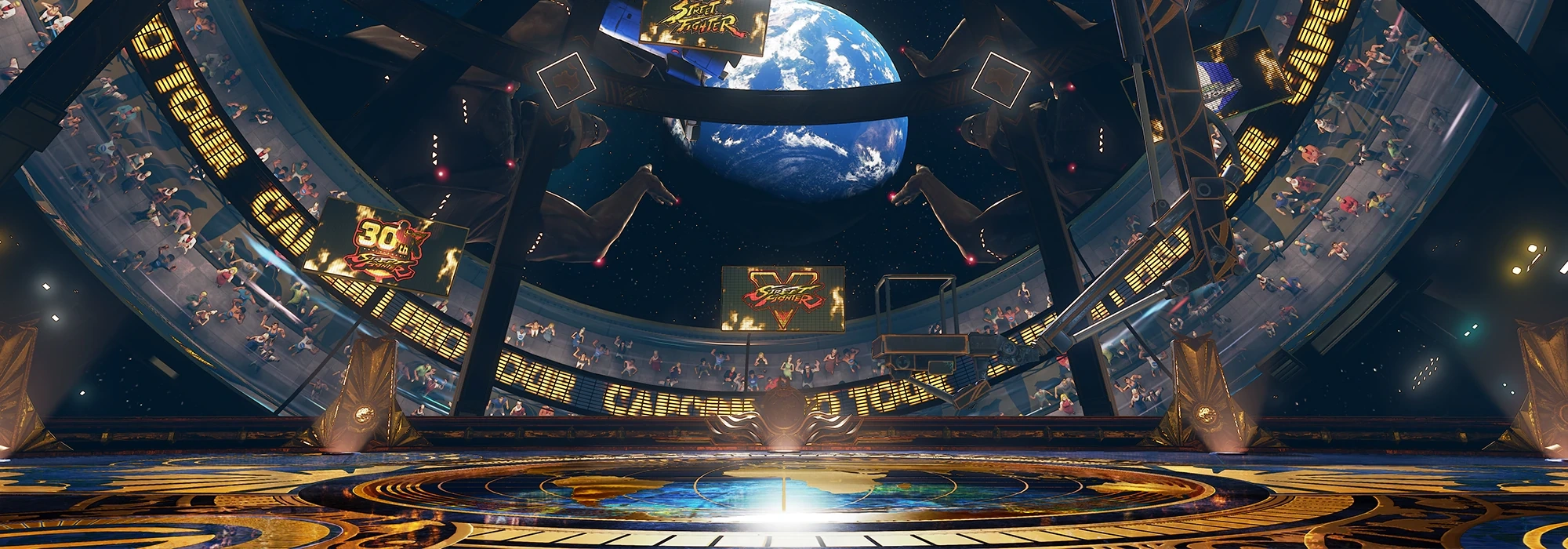 Ring of Galaxy é um estágio DLC introduzido pela primeira vez em Street Fighter V. O estágio ficou disponível apenas por tempo limitado para representar o Capcom Pro Tour 2021.
