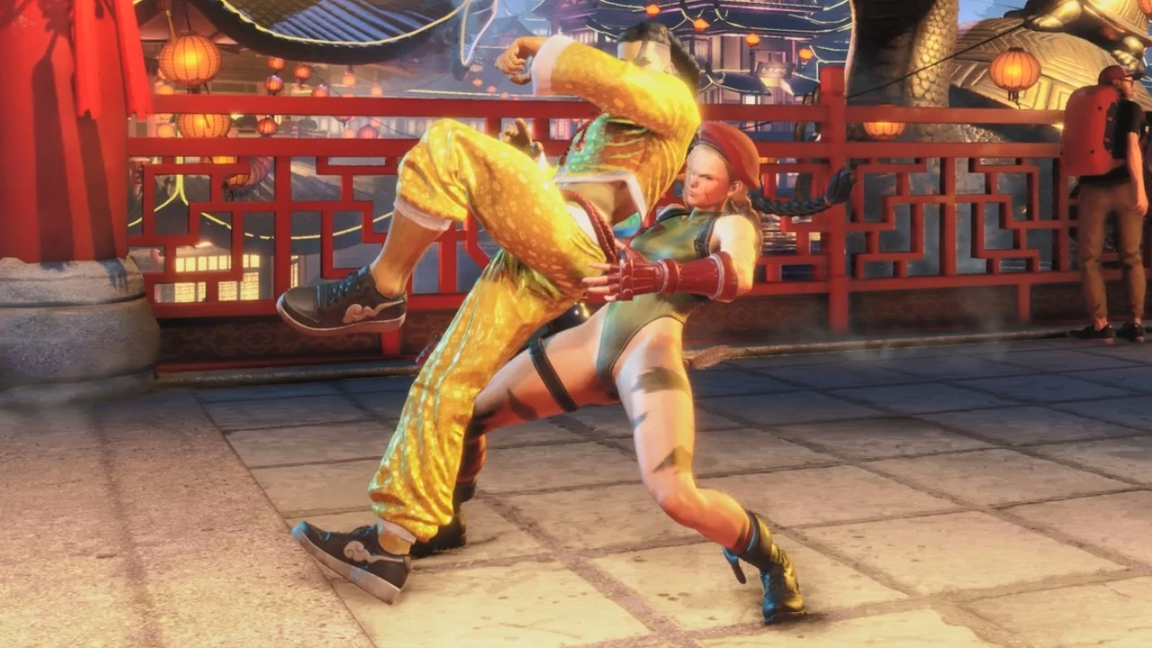 Jamie delivering an elbow to Cammy's head using Back Shaver.
