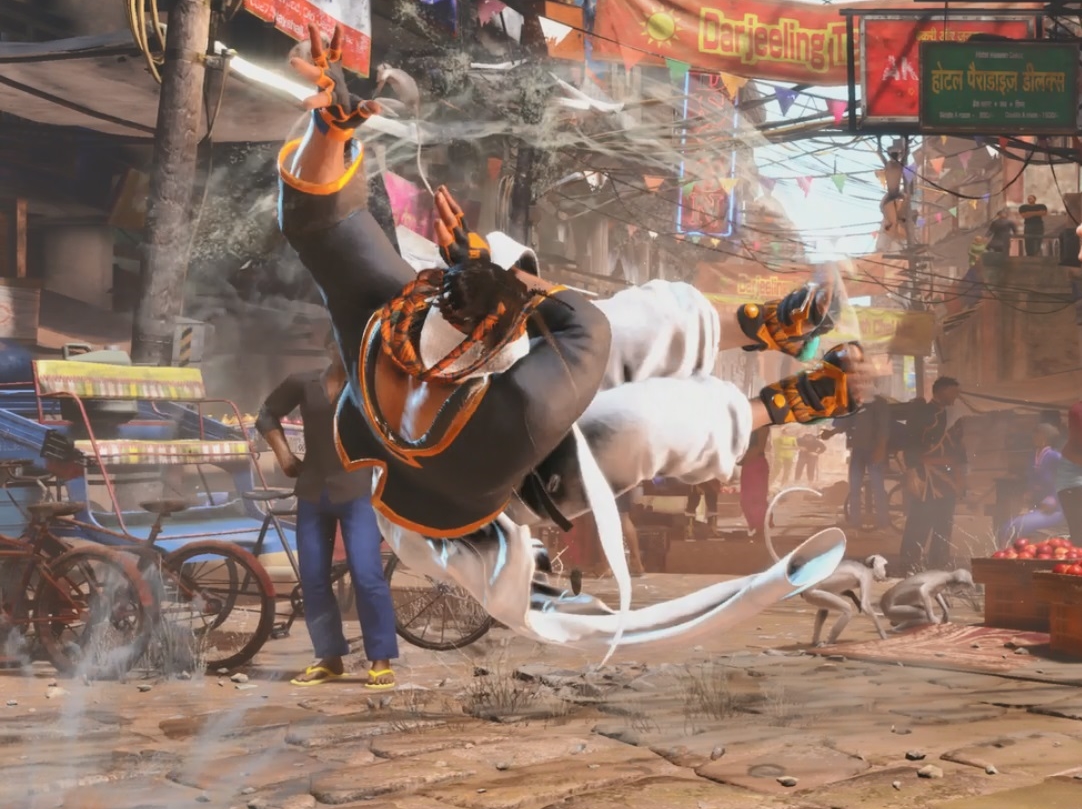 This advancing attack has Rashid airborne during the startup, making it useful for leaping over low pokes. Spacing Crescent Kick correctly can make it difficult for the opponent to punish. This move can also be used against a raw Drive Rush from the neutral game when anticipating a low attack. If Rashid scores a Punish Counter with this move, then he can link into Standing Medium Punch to extend the combo.