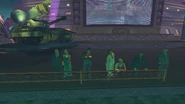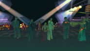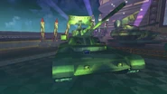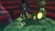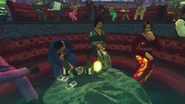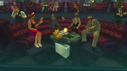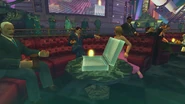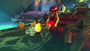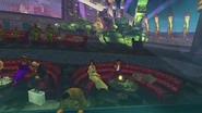 A huge ship on the Mediterranean Sea. On board, various members of mafias and their hostesses/wives witness the fight in front of them, with their tables stacked with money and gold; they are likely placing bets on the fighters present. All around, various lasers and lights, along with fireworks arrays, light up the arena and the cruise ship.