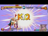 Ibuki throws a backhand fist, followed by a series of heel kicks ended by a kick similar to her close standing hard kick.