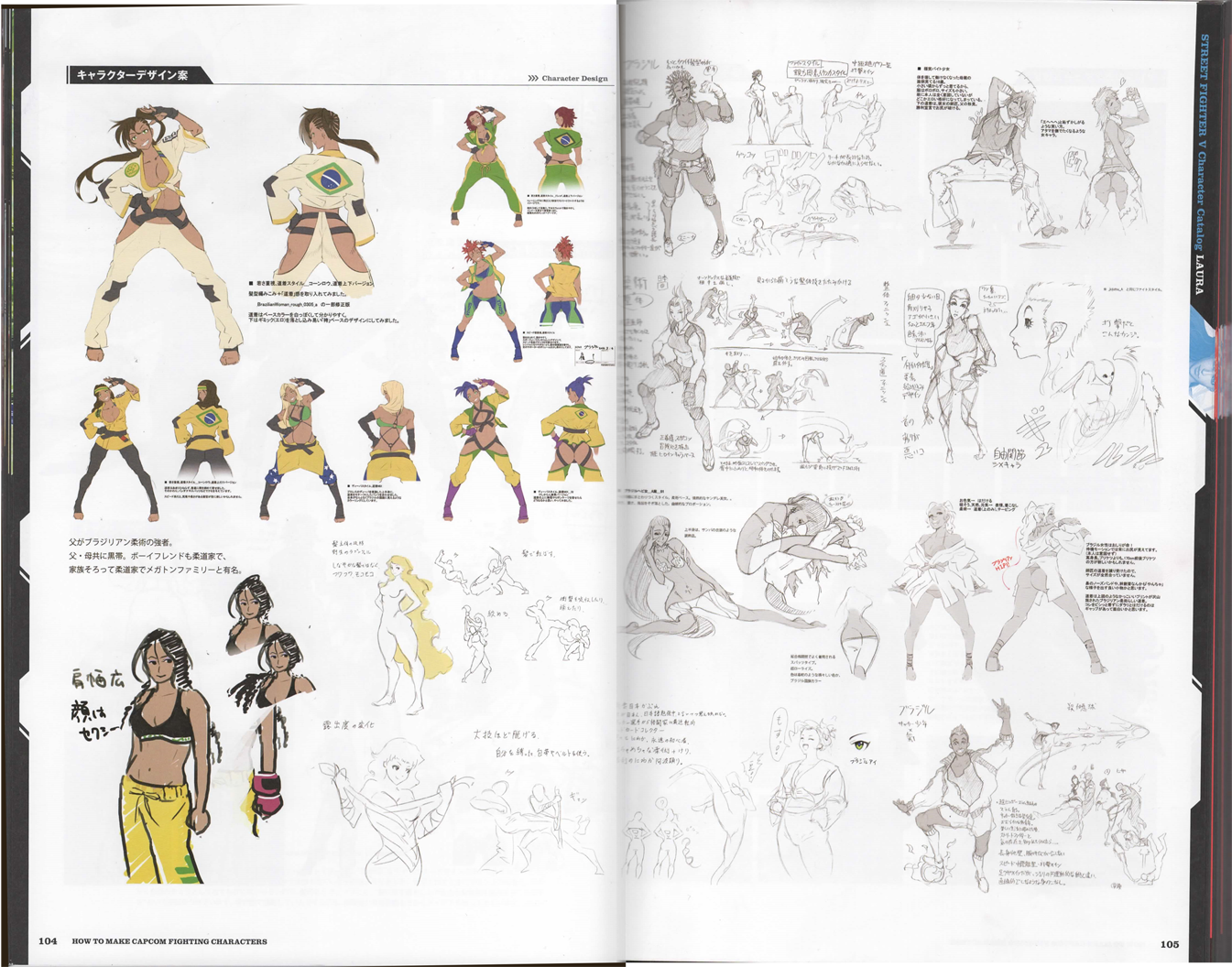 - ↑ Laura's earliest designs (seen to the right) and her later design that looked similar to Sean (seen to the left) as seen in the Street Fighter V artbook.