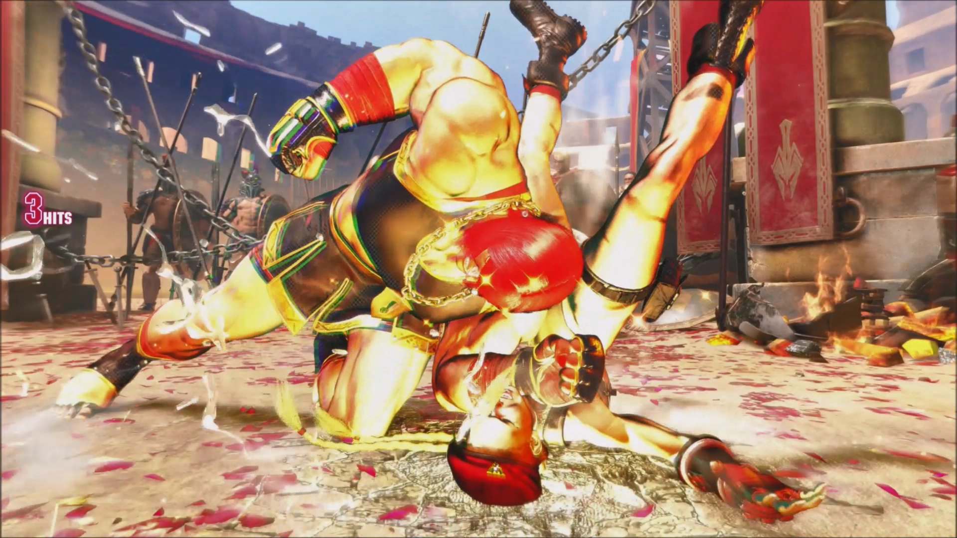 Marisa hammering Cammy to the ground during Meteorite.