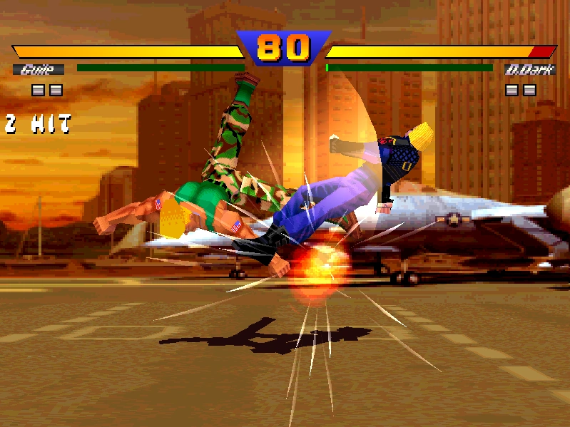 Guile performing the sideways Flash Kick, at the end of Opening Gambit.