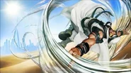 Rashid and Ryu proceed to fight, but Ryu pulls off a Shoryuken and defeats Rashid in a single blow. Rashid accepts his defeat, and they both have a friendly handshake after the fight; Rashid is happy that he will have a great story to tell everyone in his hometown, and he's grateful that he was able to learn more of his own skills. Rashid and Azam promptly depart.