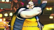 After fighting their way to the South Pole, Rufus and Zangief at last reach Pandora's Box. Suddenly, a light flashes from the box and coats the heavyweight duo leaving them confused until a blinding flash occurs that mysteriously strips them of all their girth. Rendered skinny and weightless, the two fighters cry out in despair. This ending mirrors Bob's ending in Tekken 6, where he loses his weight and becomes skinny under mysterious conditions.