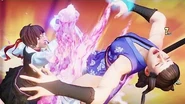 Sakura defeating Cammy with an uppercut to the chin using Sakura Rain.