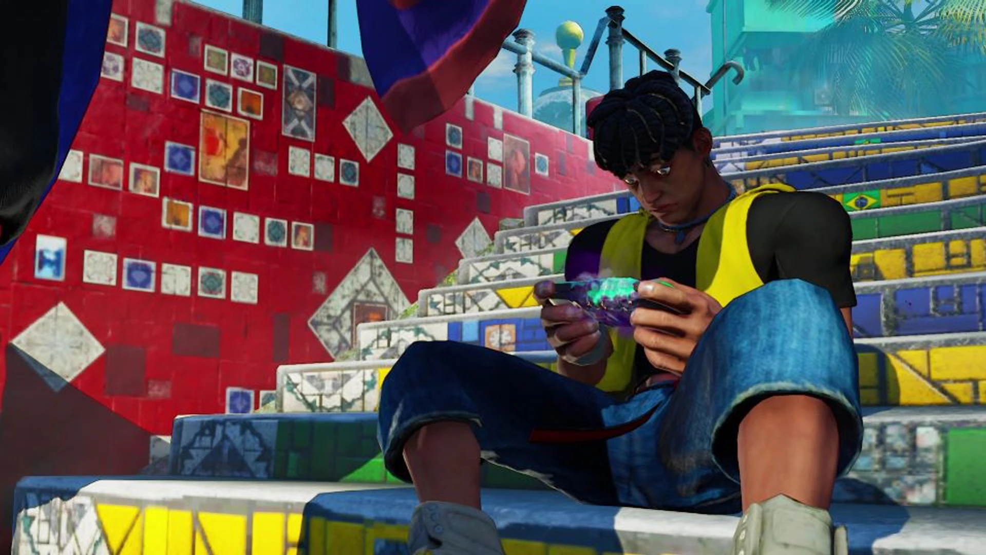 In the Street Fighter III games, Sean wears a yellow gi similar to those worn by Ryu and Ken with the sleeves removed at the shoulders, and red fighting gloves. He wears a black belt and fights barefoot. He is a dark-skinned Brazilian and has black dreadlocks with the sides shaved off and usually brings a basketball with him everywhere.