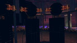 This is the laboratory of S.I.N. There are experiments made in this laboratory that can be seen with camera mods, with two test experiments one male and one female. It appears that the equipment is being pushed to it's limits as there is smoke coming out of some of the machines and others are shaking as if they are under heavy use. On the sides there are doors with S.I.N. symbols that is not known where they lead to. On the machine in the center of the stage, there are steps that lead to the second floor of the machine, however there is no more computers or other electronics on the second floor.