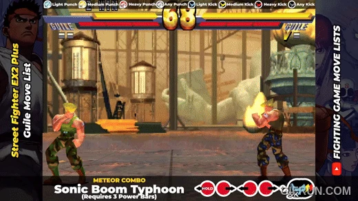 Sonic Boom Typhoon (ソニックブームタイフーン Sonikku Būmu Taifūn?) is Guile's Meteor Combo in Street Fighter EX2 Plus and Street Fighter EX3. It is a more powerful version of the Sonic Typhoon.