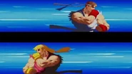 Sagat goes after Ryu to settle the score after Ryu had scarred his chest with a Metsu Shoryuken at the end of the original Street Fighter. |