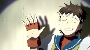 As Akuma is about to leave, Ryu stands up and prepares to face him. As they battle, Ryu successfully throws Akuma at the sky, and charges a Shinku Hadoken, but Akuma interrupts and unleashes a series of Messatsu Gohados. Ryu manages to dodge them all, strikes a punch that puts Akuma back to the ground, and hit him with a Shoryuken. He then starts to charge a Metsu Hadoken, while Akuma is fastly approaching him. As Ryu is about to unleash his Hadoken at Akuma, the launch is interrupted by Ken using a Shinryuken. He tells Ryu that he's mad because Ryu tried to take down Akuma without his help.