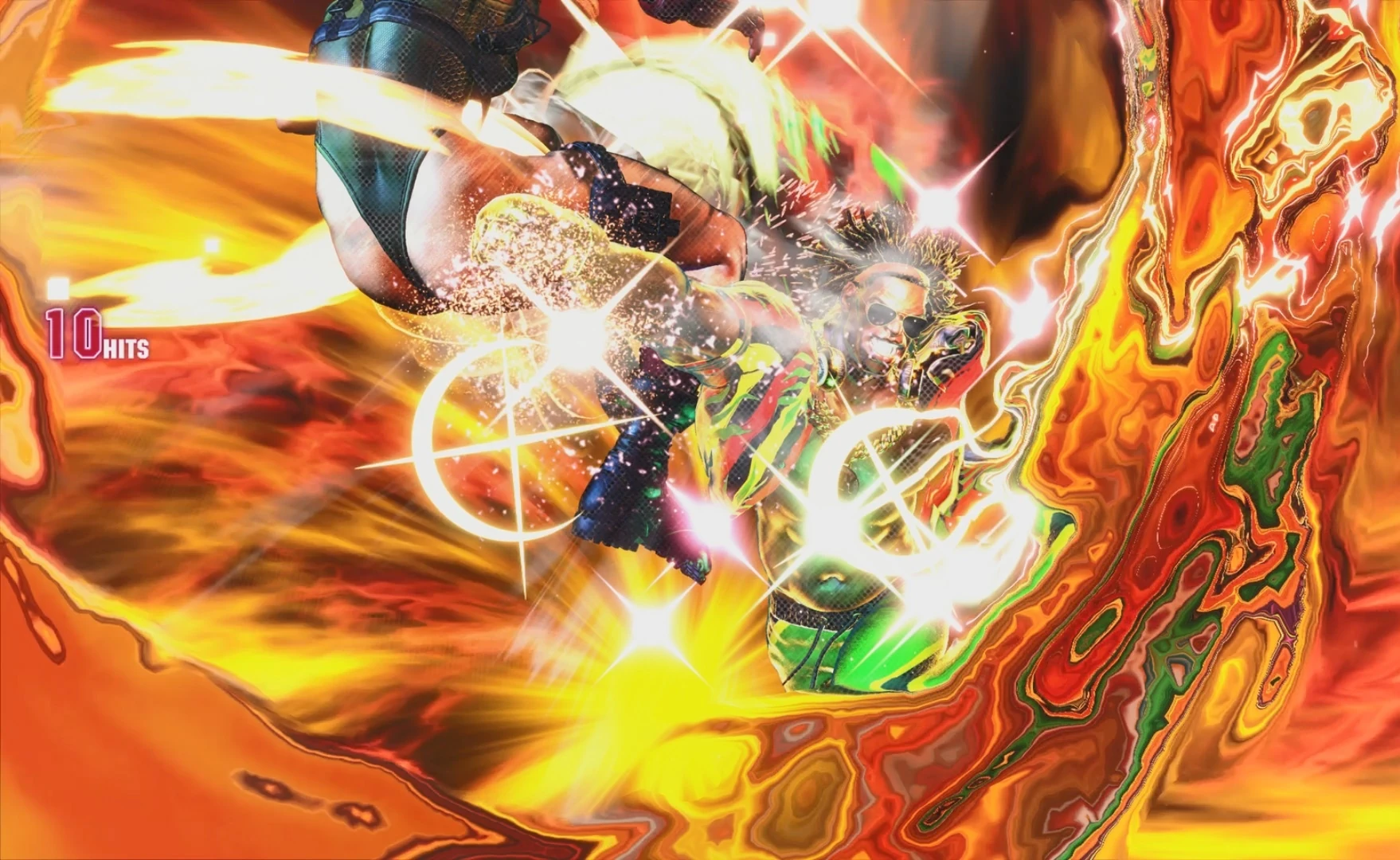 Executed by performing two quarter-circle forward motions and pressing any punch button, Dee Jay delivers a knee strike to his opponent before breaking out into a rhythmic combo by pressing the following buttons in order:
