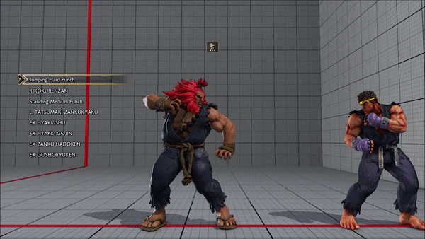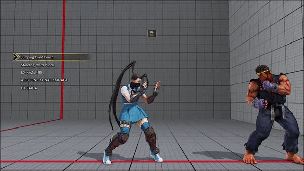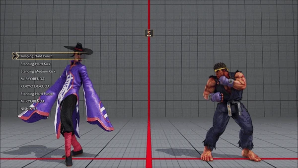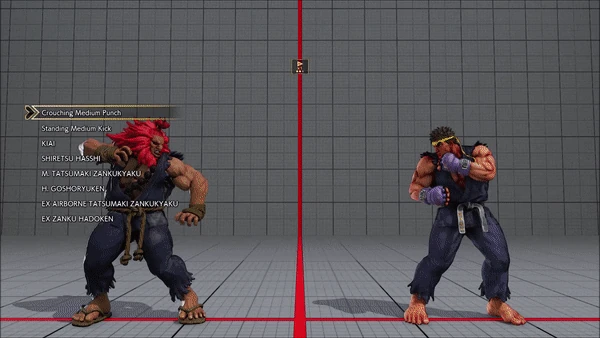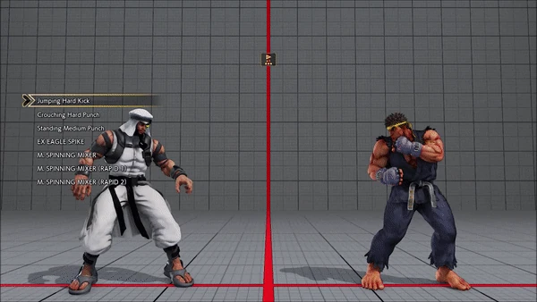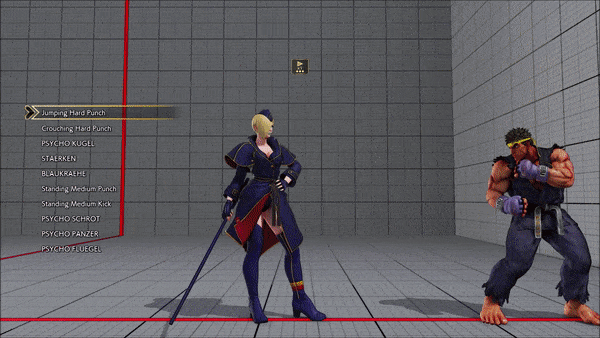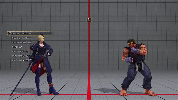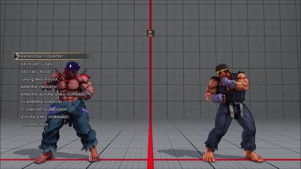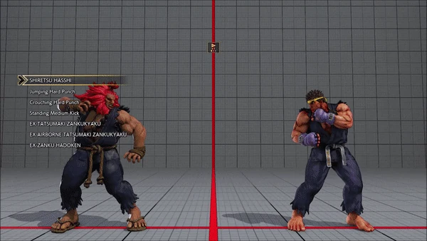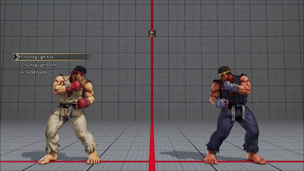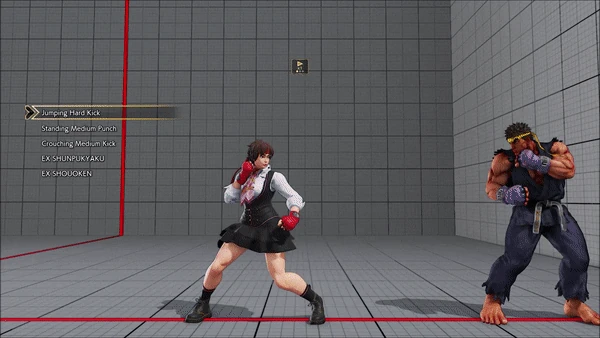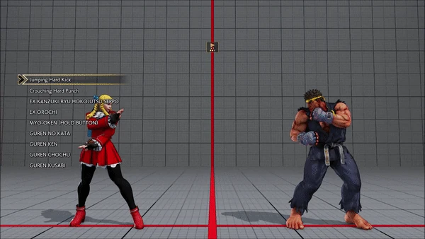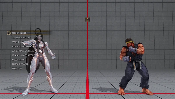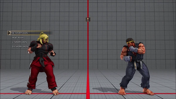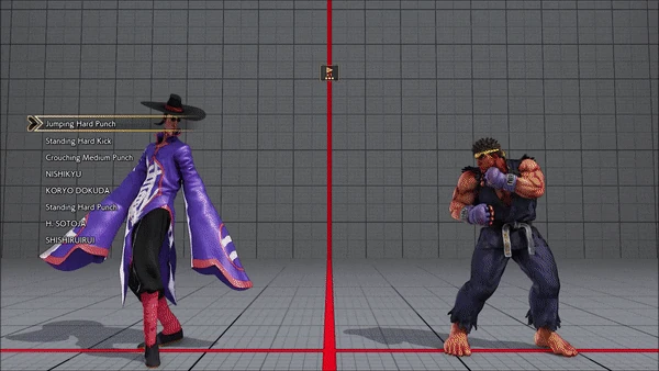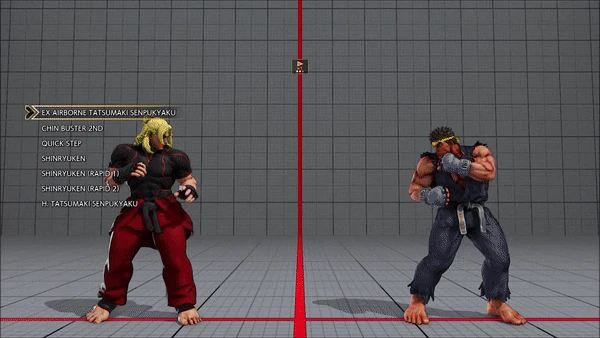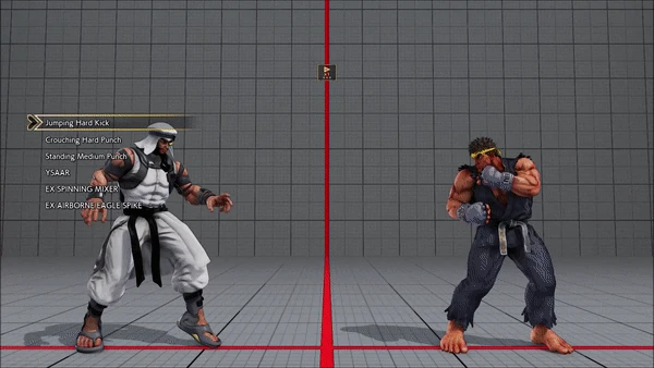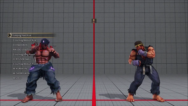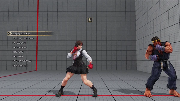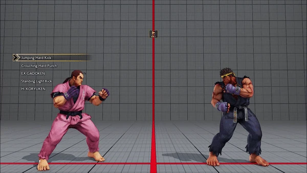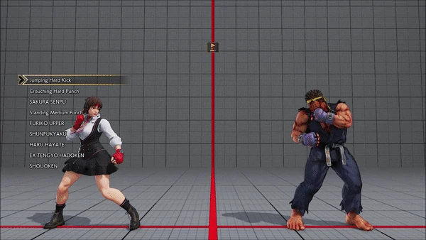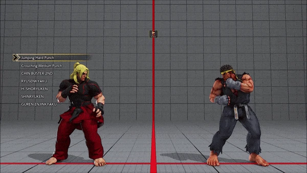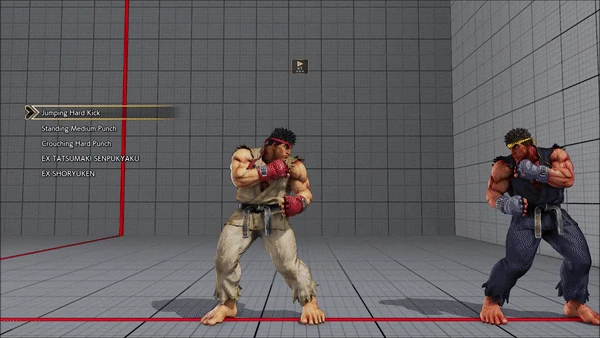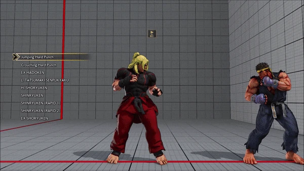- Jumping - Crouching - Shoryuken - Shinryuken - Shinryuken (Rapid 1) - Shinryuken (Rapid 2) - Tatsumaki Senpukyaku - Shoryuken