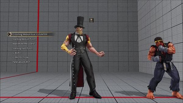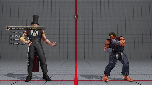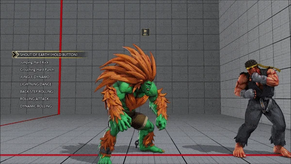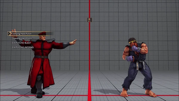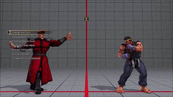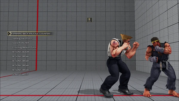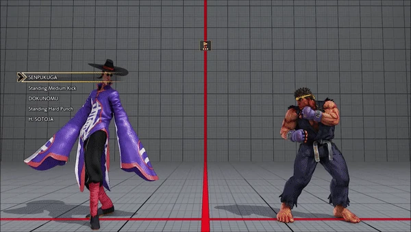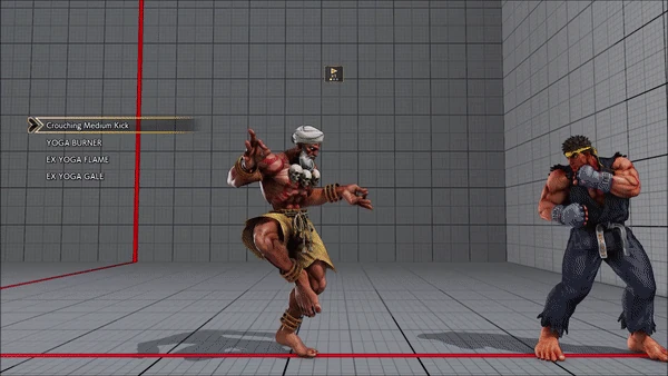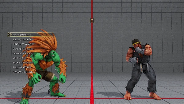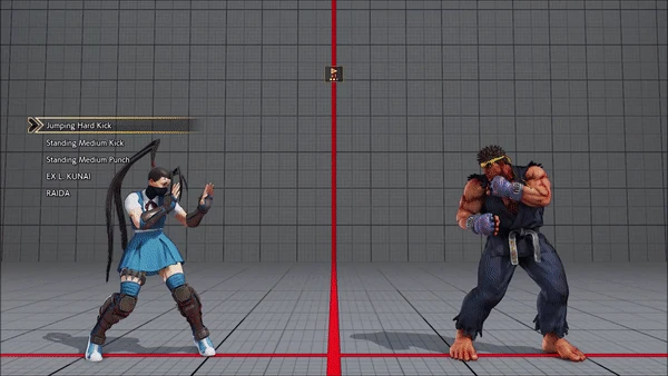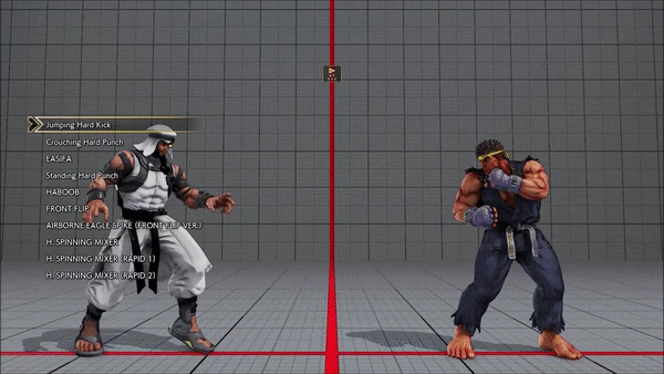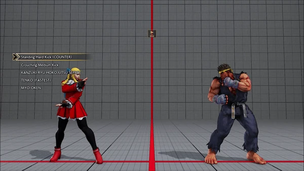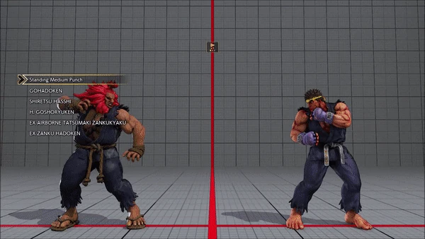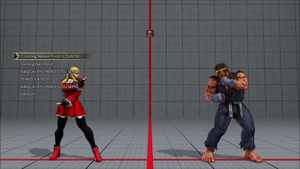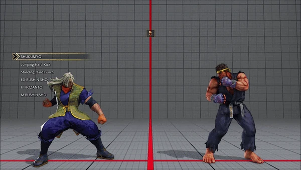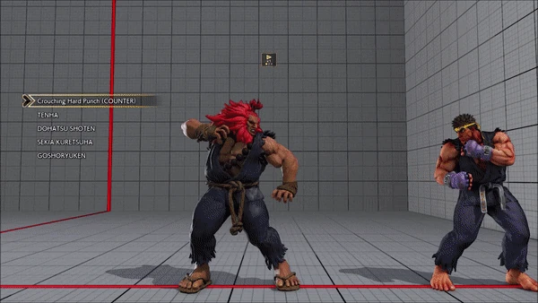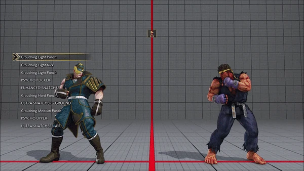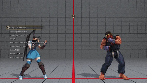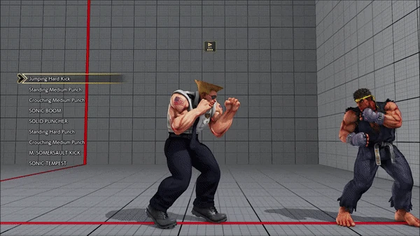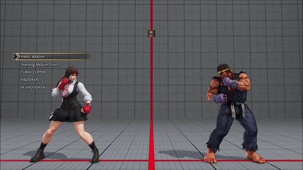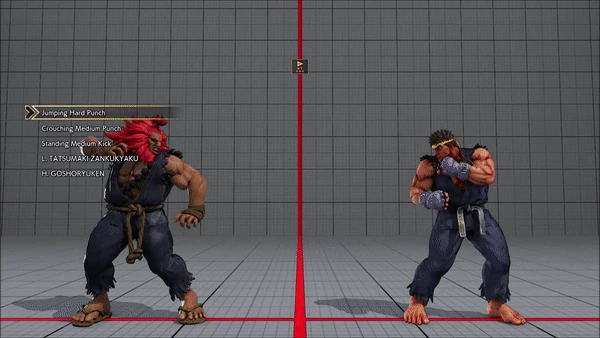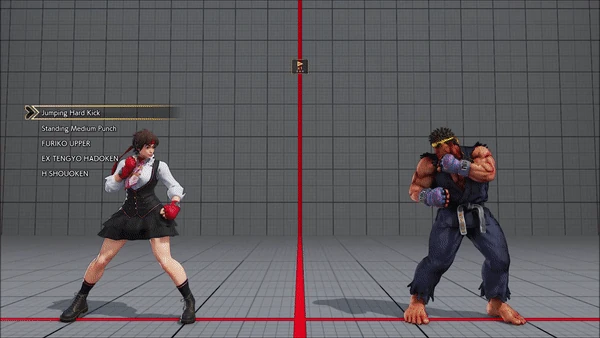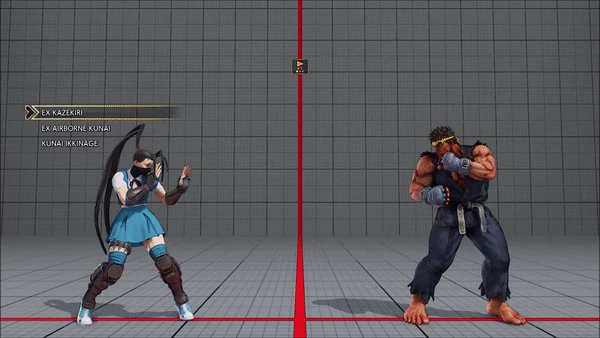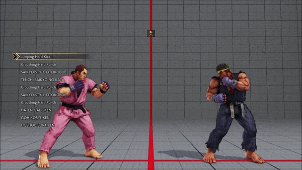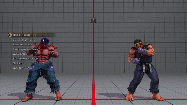 - Jumping - Crouching - Shoryuken - Shinryuken - Shinryuken (Rapid 1) - Shinryuken (Rapid 2) - Tatsumaki Senpukyaku - Shoryuken