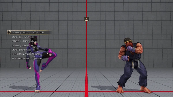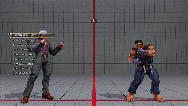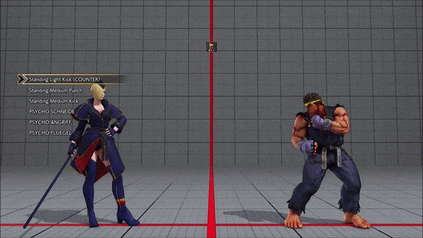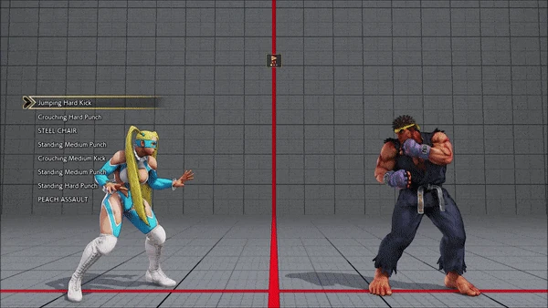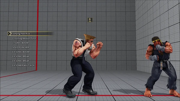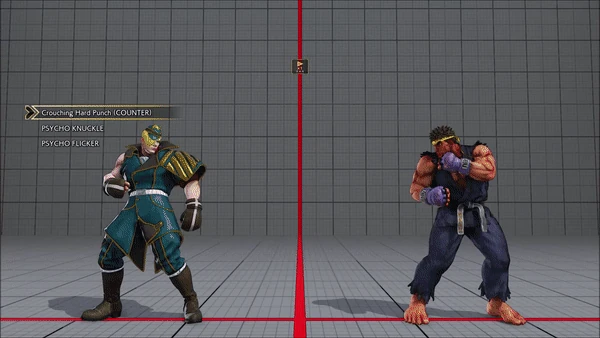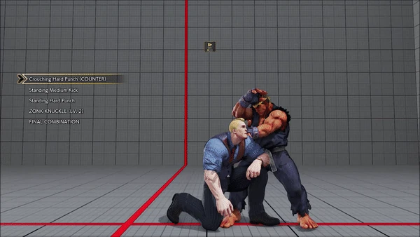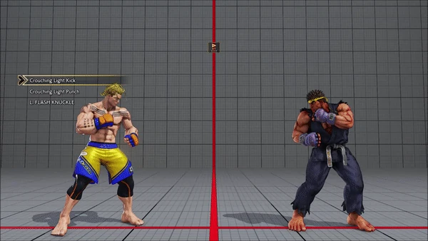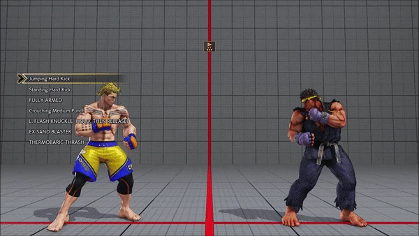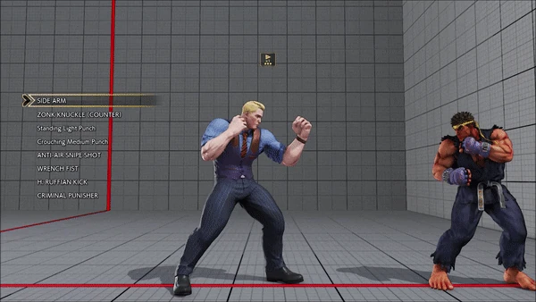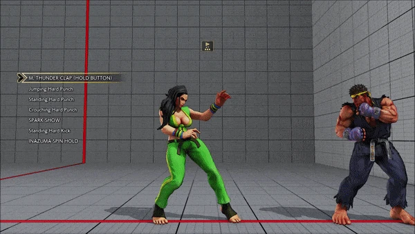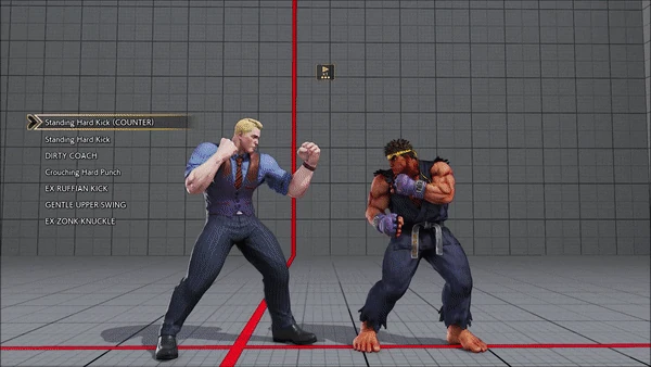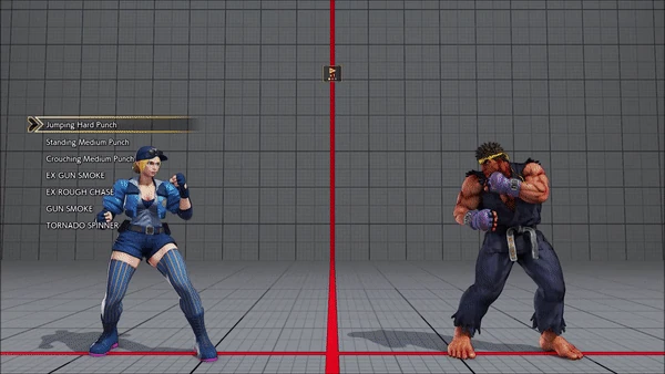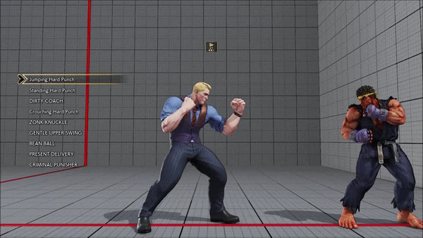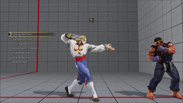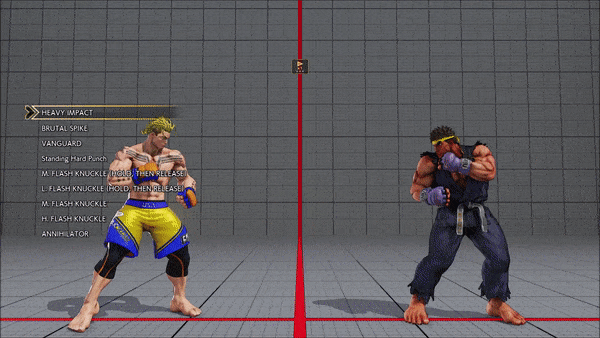 - Jumping - Standing - Vanguard - Outlaw Kick - Brutal Spike - Flash Knuckle (Hold, Then Release) - Flash Knuckle (Hold, Then Release) - Avenger - No Chaser