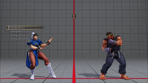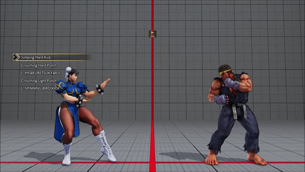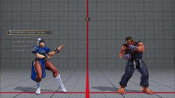 - Jumping - Crouching - Hyakuretsukyaku - Crouching - Spinning Bird Kick