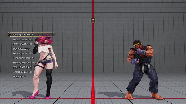 - Jumping - Standing - Heart Raid - Toxic Glamor - Standing - Heart Raid (Feint) - Standing - Heart Raid - Shocking Heel - Toxic Bind