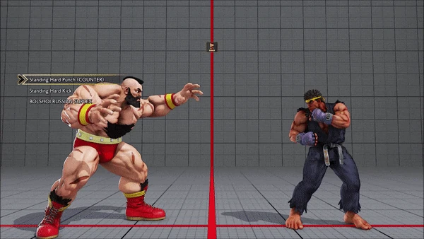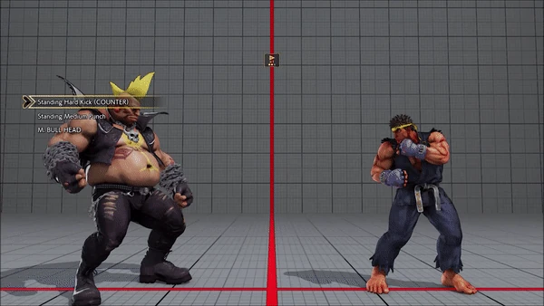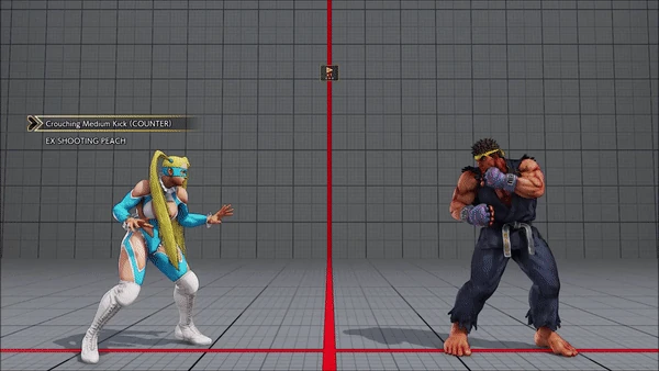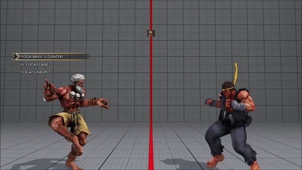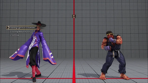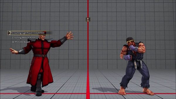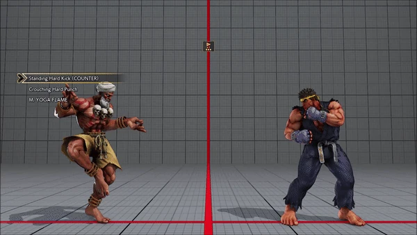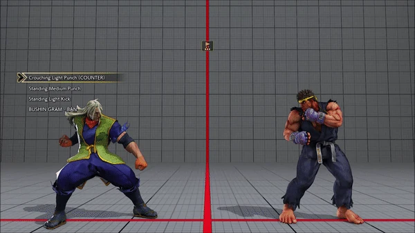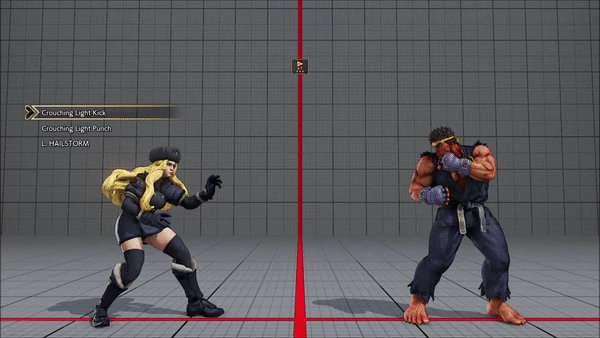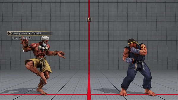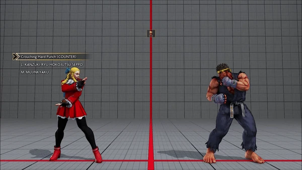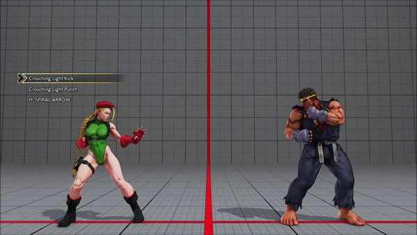 - Crouching (Counter) - Standing - Crouching - Hadoken