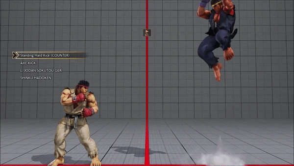 - Standing (Counter) - Axe Kick - Jodan Sokutou Geri - Shinku Hadoken
