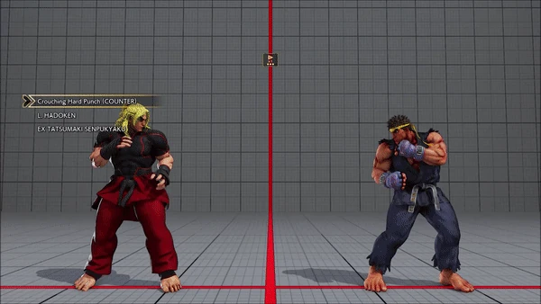 - Crouching (Counter) - Hadoken - Tatsumaki Senpukyaku