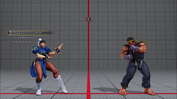 - Standing (Counter) - Crouching - Hyakurestukyaku