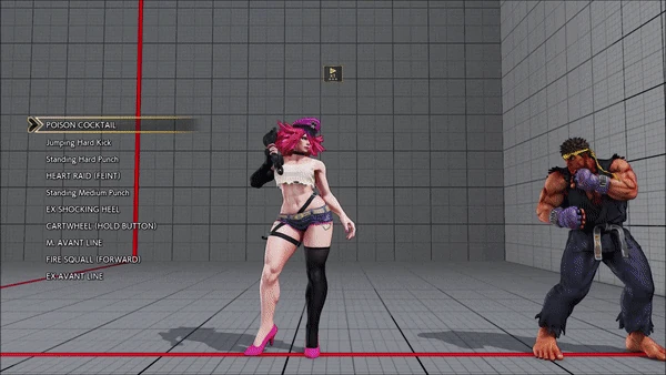 - Poison Cocktail - Jumping - Standing - Heart Raid (Feint) - Standing - Shocking Heel - Cartwheel (Hold Button) - Avant Line - Fire Squal (Forward) - Avant Line
