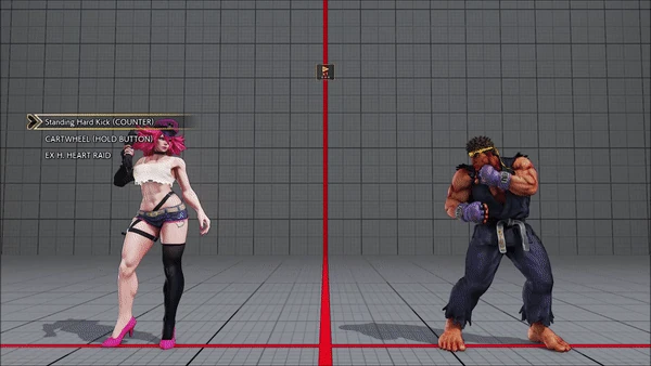- Standing (Counter) - Cartwheel (Hold Button) - Heart Raid