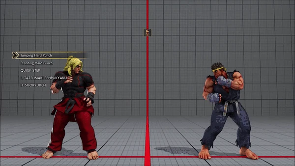- Jumping - Standing - Quick Step - Tatsumaki Senpukyaku - Shoryuken