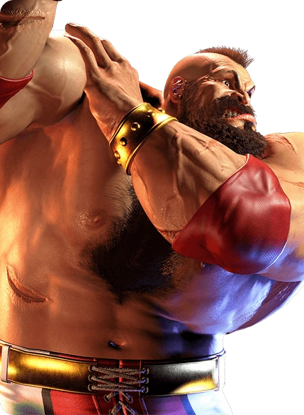 A colossal wrestler nicknamed the Red Cyclone. Zangief is dedicated to physical improvement and instructing his students.
